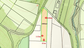 Šírka pozemku 21 m, dĺžka 108 - 115 m.