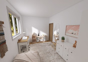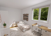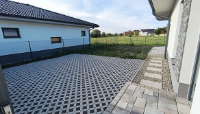 Terénne úpravy záhrady, terasa, parkovacia plocha, plot, brána na diaľkové ovládanie. Príprava na krb, klimatizáciu, fotovoltaiku, vonkajšie žalúzie aj bezpečnostný systém.