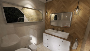 Murivo - tehla HELUZ + 18 cm zateplenie, fasáda s kamenným obkladom, plastové okná s trojsklom, elektrické podlahové kúrenie s termostatmi v každej miestnosti, optický internet, videovrátnik.