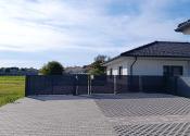 Terénne úpravy záhrady, terasa, parkovacia plocha, plot, brána na diaľkové ovládanie. Príprava na krb, klimatizáciu, fotovoltaiku, vonkajšie žalúzie aj bezpečnostný systém.