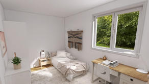 Murivo - tehla HELUZ + 18 cm zateplenie, fasáda s kamenným obkladom, plastové okná s trojsklom, elektrické podlahové kúrenie s termostatmi v každej miestnosti, optický internet, videovrátnik.