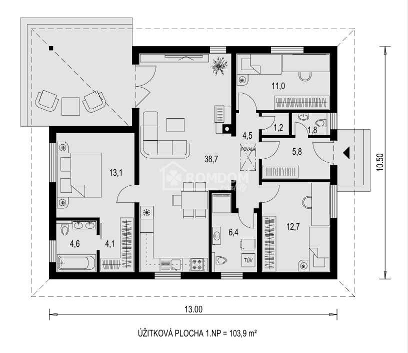 Romdom reality ponúka na predaj: Moderný 4-izbový bungalov v obci Láb, okres Malacky - projekt Lagúna