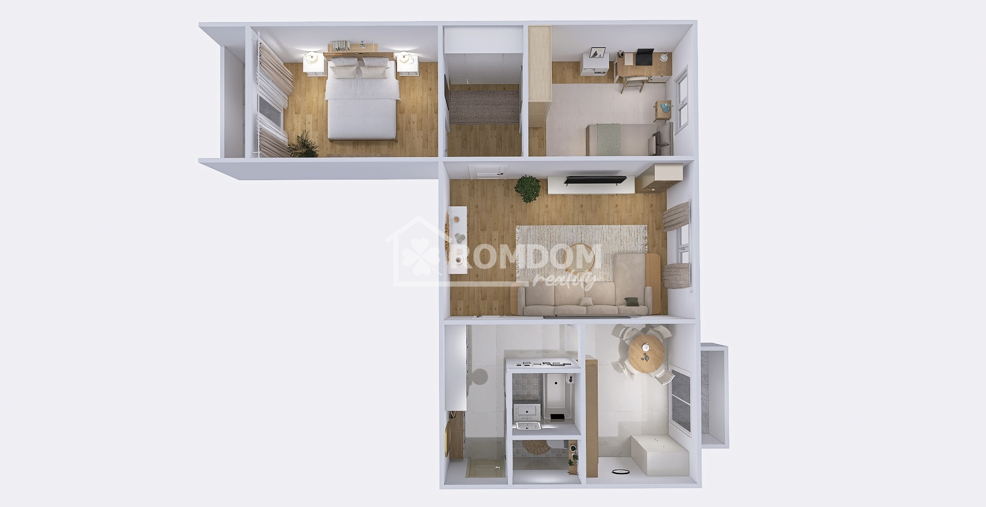 Dispozícia bytu: chodba, kuchyňa s balkónom, obývačka, 2 samostatné izby, z toho jedna má vstup na loggiu, kúpeľňa, samostatné WC, šatník. K bytu prislúcha pivnica.