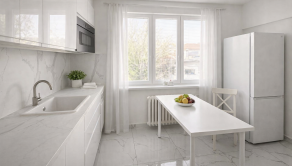 V izbách sú nové plávajúce podlahy, v ostatných miestnostiach luxusná dlažba s vysokým leskom v mramorovom dizajne.