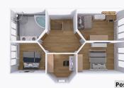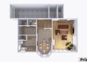 Tri spálne, menšia miestnosť vhodná ako pracovňa alebo detská izba, priestranná kúpeľňa s vaňou, sprchovým kútom a WC. Z každej miestnosti je výstup na balkón.