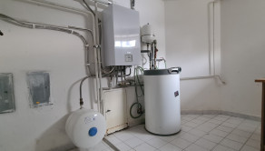 Kúrenie a ohrev vody cez plynový kondenzačný kotol Thermona s diaľkovým termostatom. Ohrevné telesá radiátory.