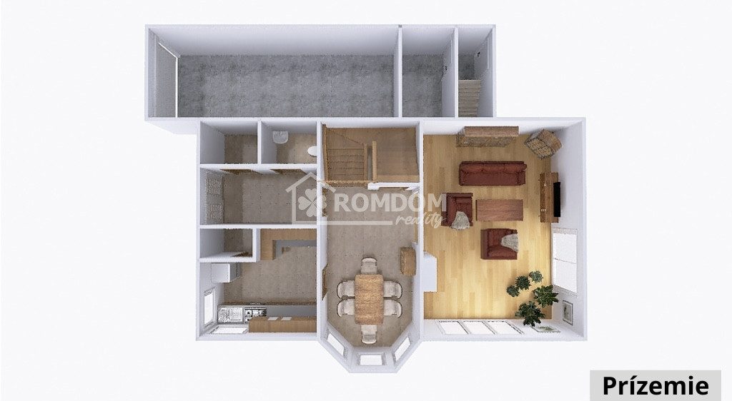 Romdom reality ponúka exkluzívne na predaj 5 izbový rodinný dom s pozemkom o výmere 816 m2 v obci Trnové pri Žiline.