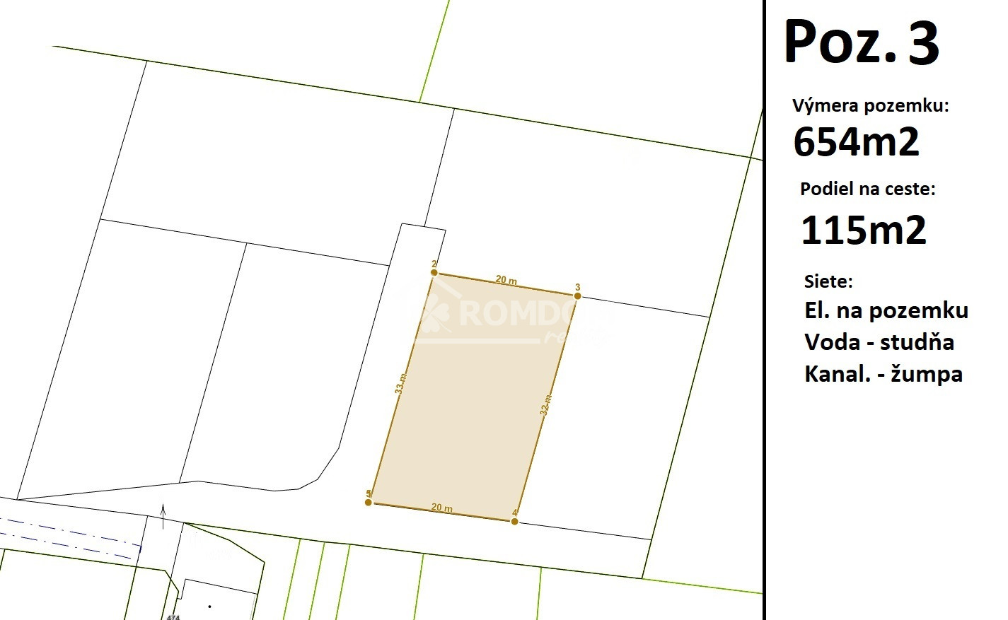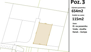 Pozemok 3 - výmera 654m2 + podiel na ceste 115m2