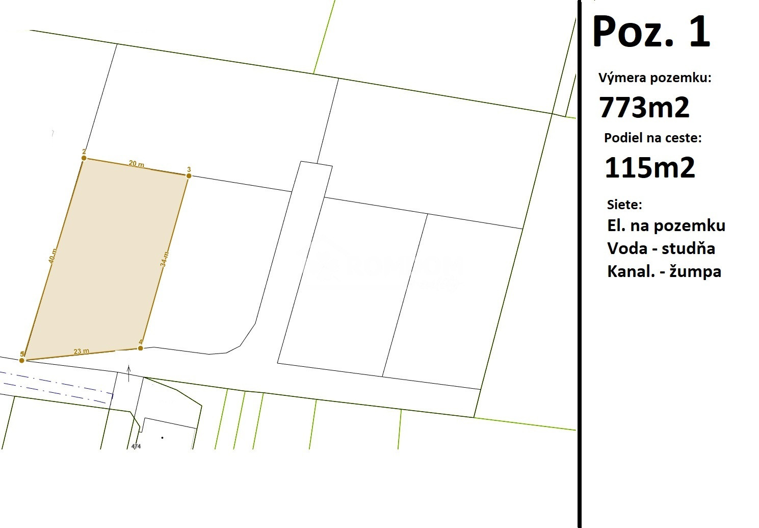 Pozemok 1 - výmera 773m2 + podiel na ceste 115m2