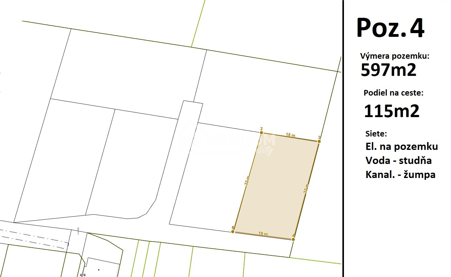 Pozemok 4 - výmera 597m2 + podiel na ceste 115m2