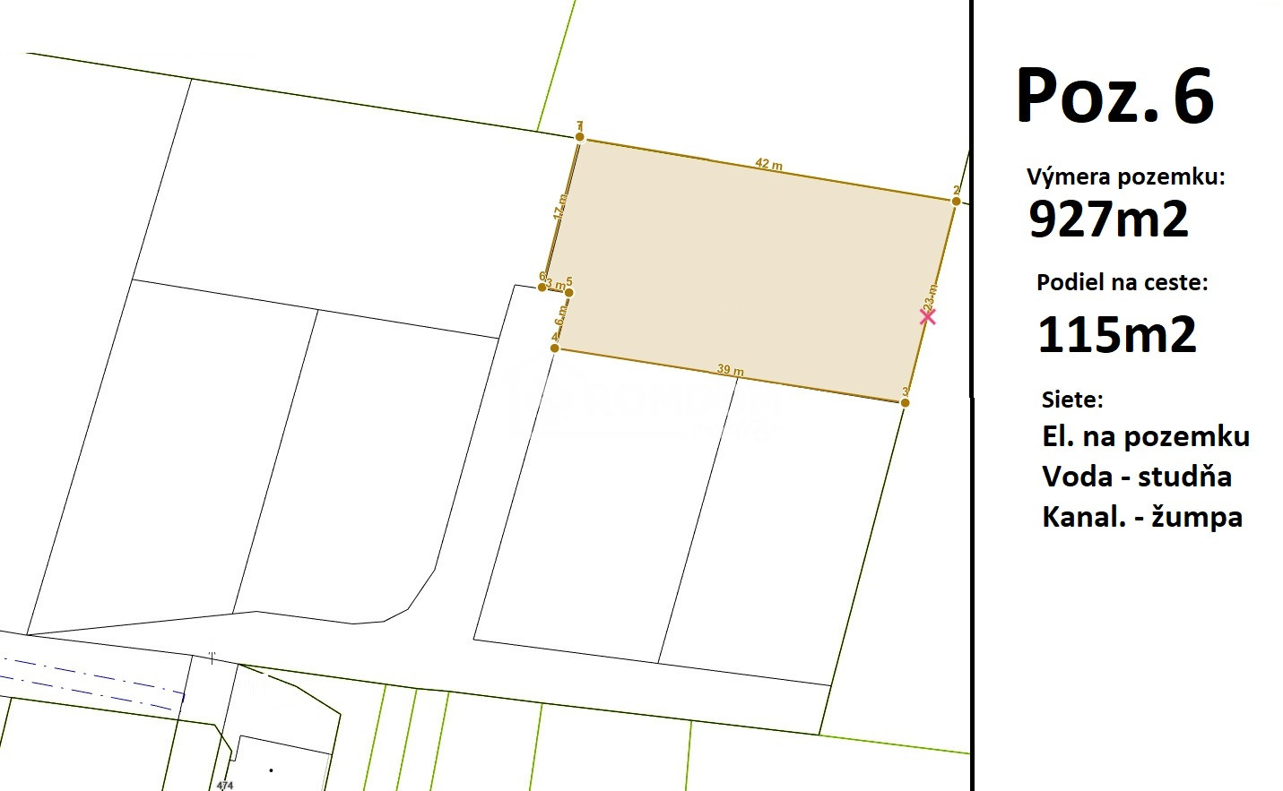 Pozemok 6 - výmera 927m2 + podiel na ceste 115m2