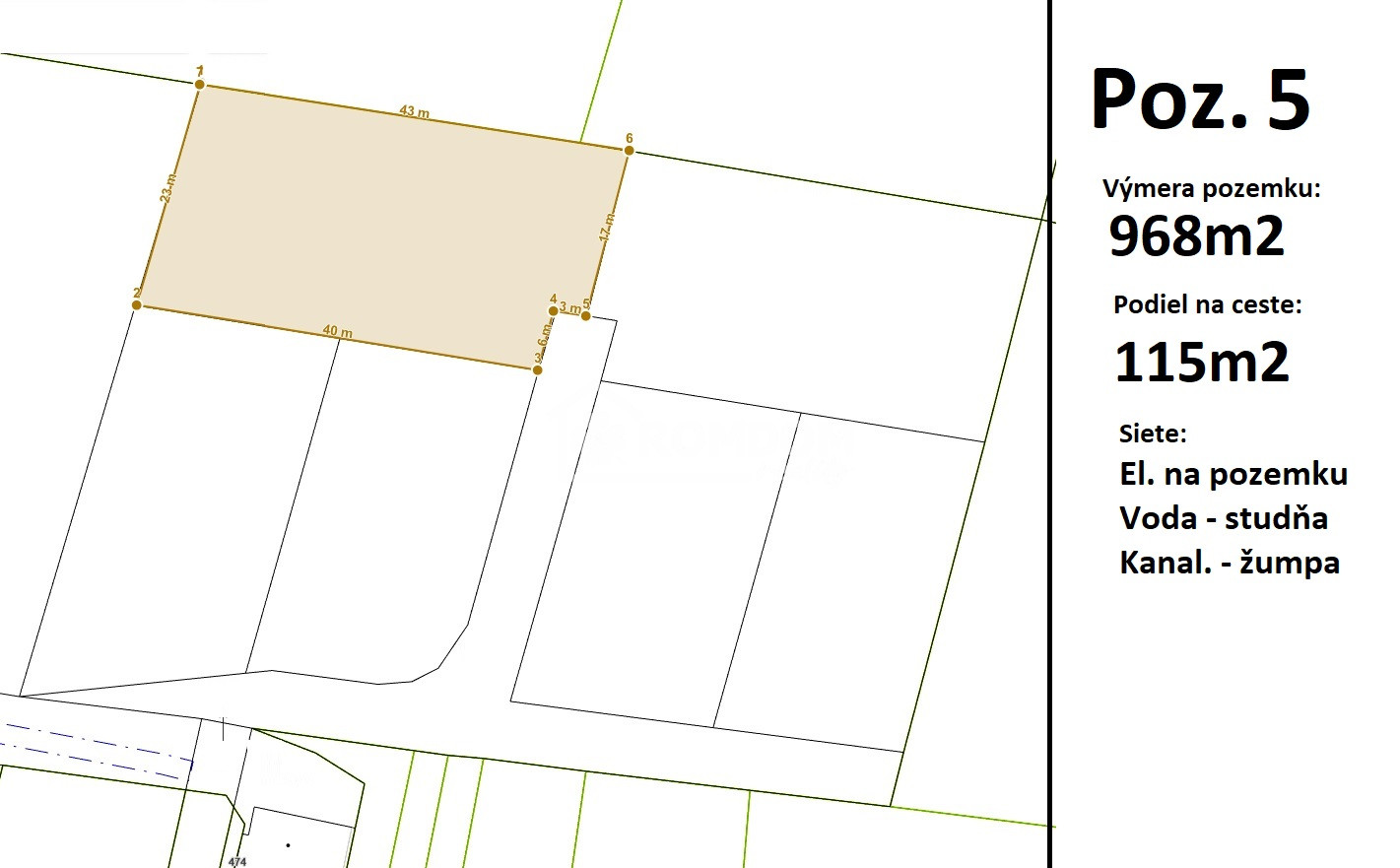 Pozemok 5 - výmera 968m2 + podiel na ceste 115m2