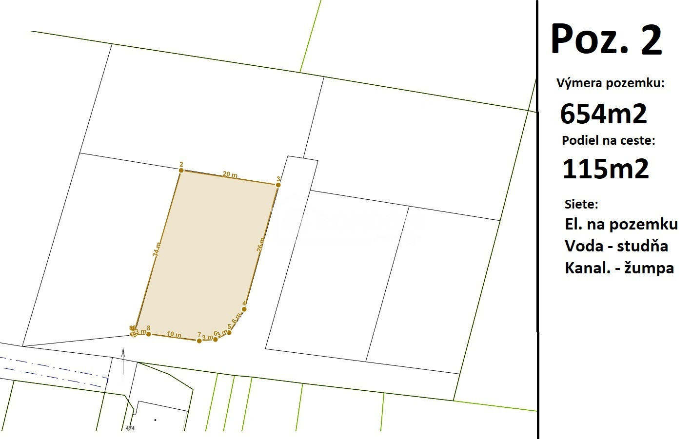 Pozemok 2 - výmera 654m2 + podiel na ceste 115m2