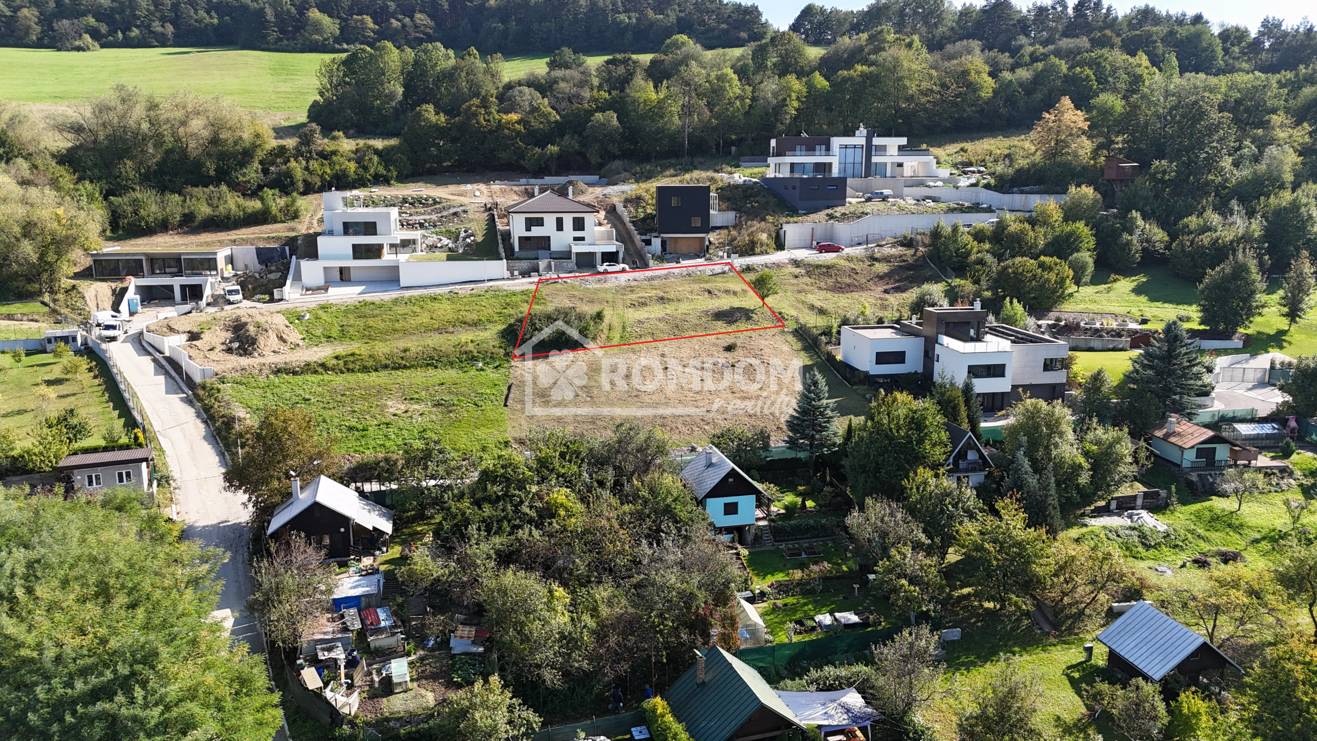 Pozemok je mierne svahovitý, ponúka nádherné panoramatické výhľady do okolia a možnosť vytvoriť architektonicky zaujímavú a originálnu stavbu.